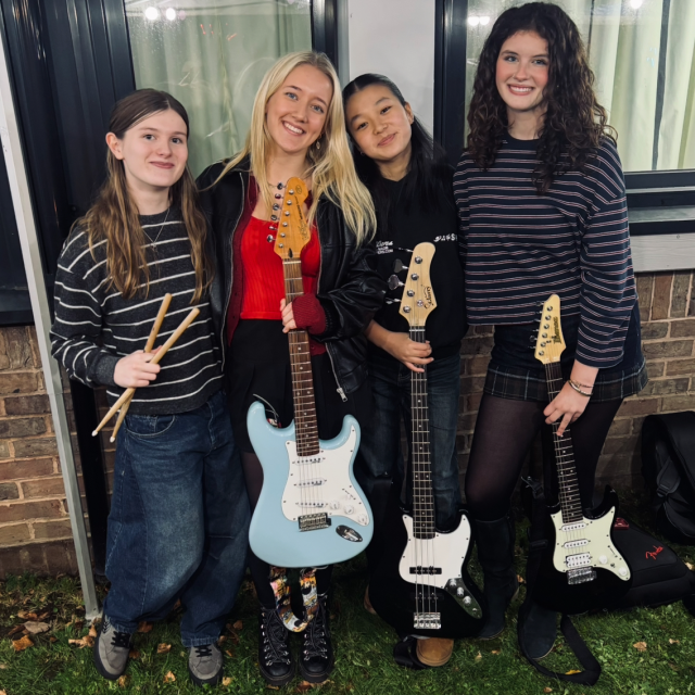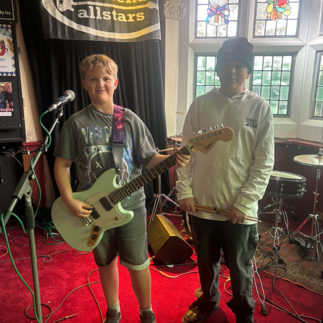 Style: Here we have the mighty Route 66, a band will style, skill and energy in abundance – couple this with a super eclectic set of tunes (including the first ever Allstars band singing a song in French!) and you’ve got a hit band on your hands! Members:ย Cornelius (Bass), Henry (Guitar), Taz (Drums), Zennor (Vocals) Band formed: January 2024