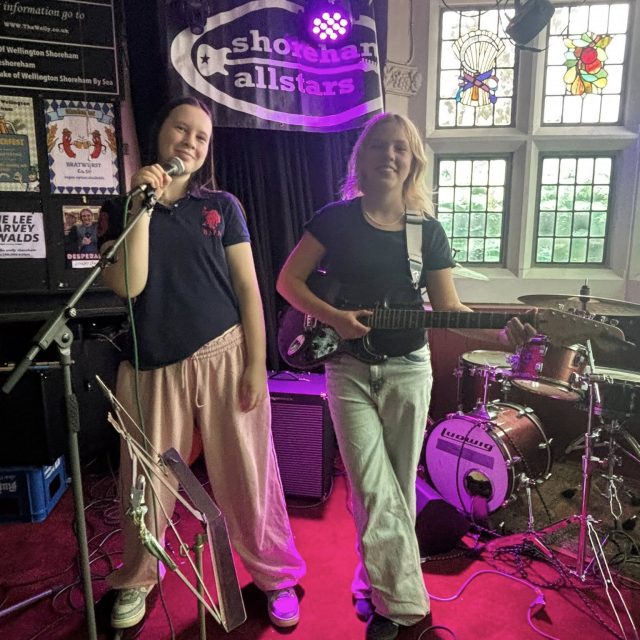 Style: Here we have a super talented duo who are only one gig down but are already nailing their set with style! Full of motivation, natural musical ability and confidence, this band are one to watch. Members: Evie (vocals, guitar), Tula (Bass) Band formed:ย October 2025